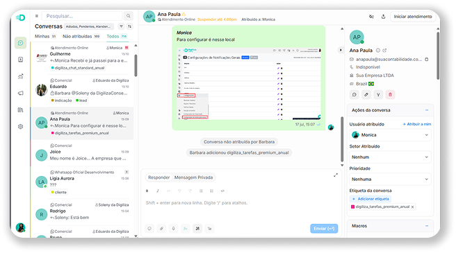 Com o Digiliza® Chat, você oferece um atendimento Omnichannel na contabilidade, centralizando