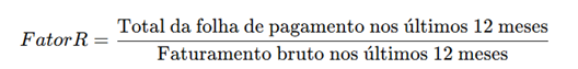 O cálculo do Fator R é baseado na seguinte fórmula:
